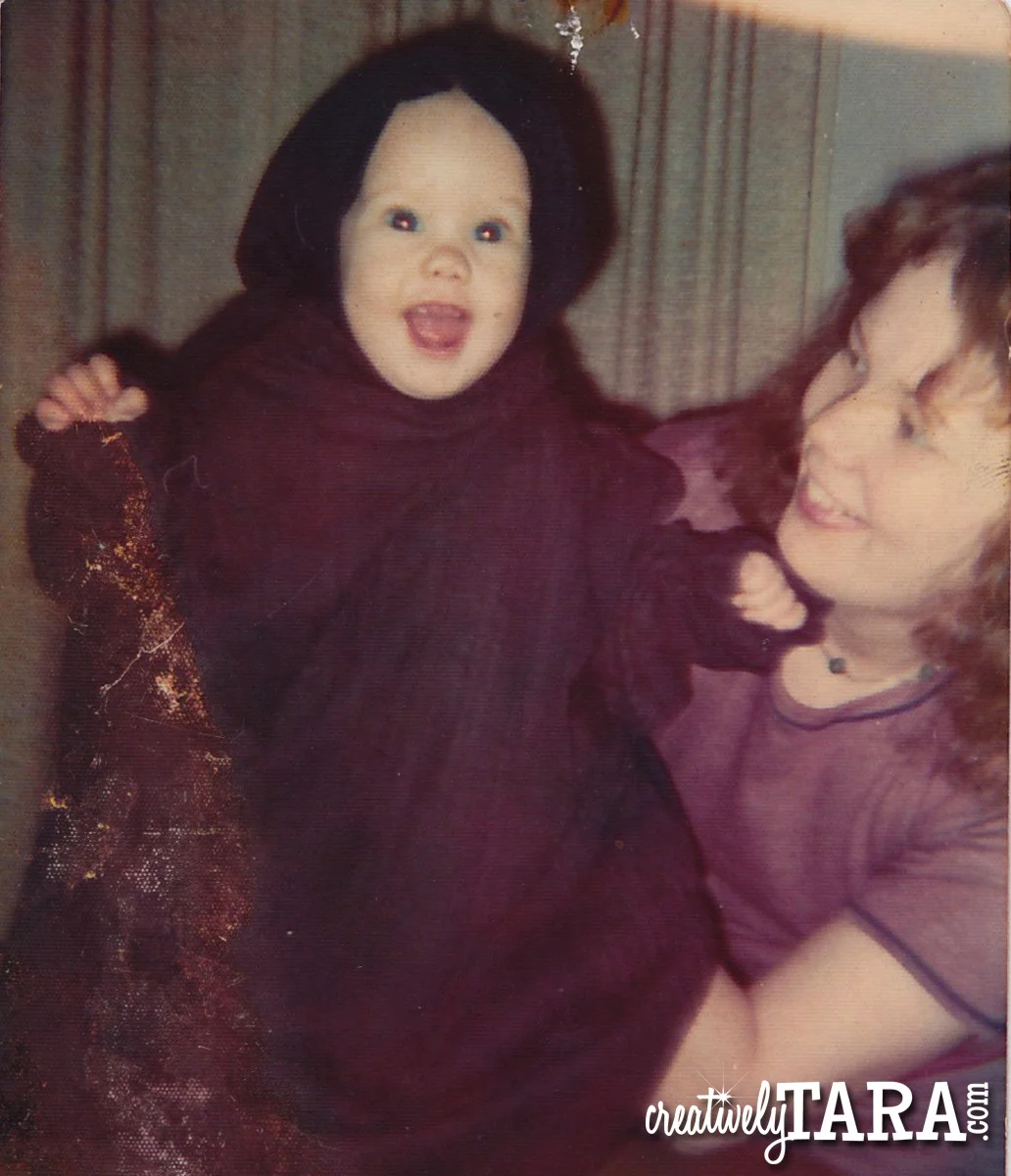 I thought I would share a fun picture that shows how my love of Halloween and all things scary started since I was a baby. My Mom decided to dress me up as a vampire because my eye teeth were the first to come in. I love this picture so much!