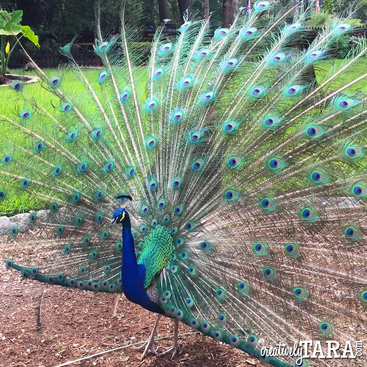 At the end of July, my sister and 2 of our cousins, took a girl trip to St. Augustine. We ended up at the Fountain of Youth and there were a bunch of peacocks hanging around. This guy was just sitting there posing for me.